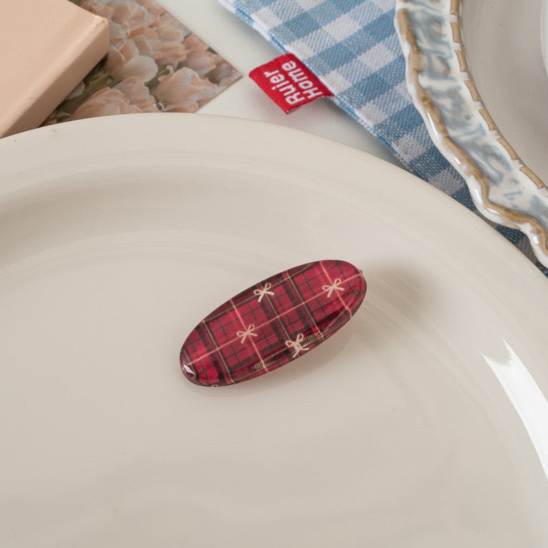 Red hair clip, ghigham hair clip, checkered hair clip, maroon hair clip, cute hair accessories, gifts for girls