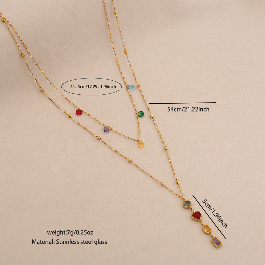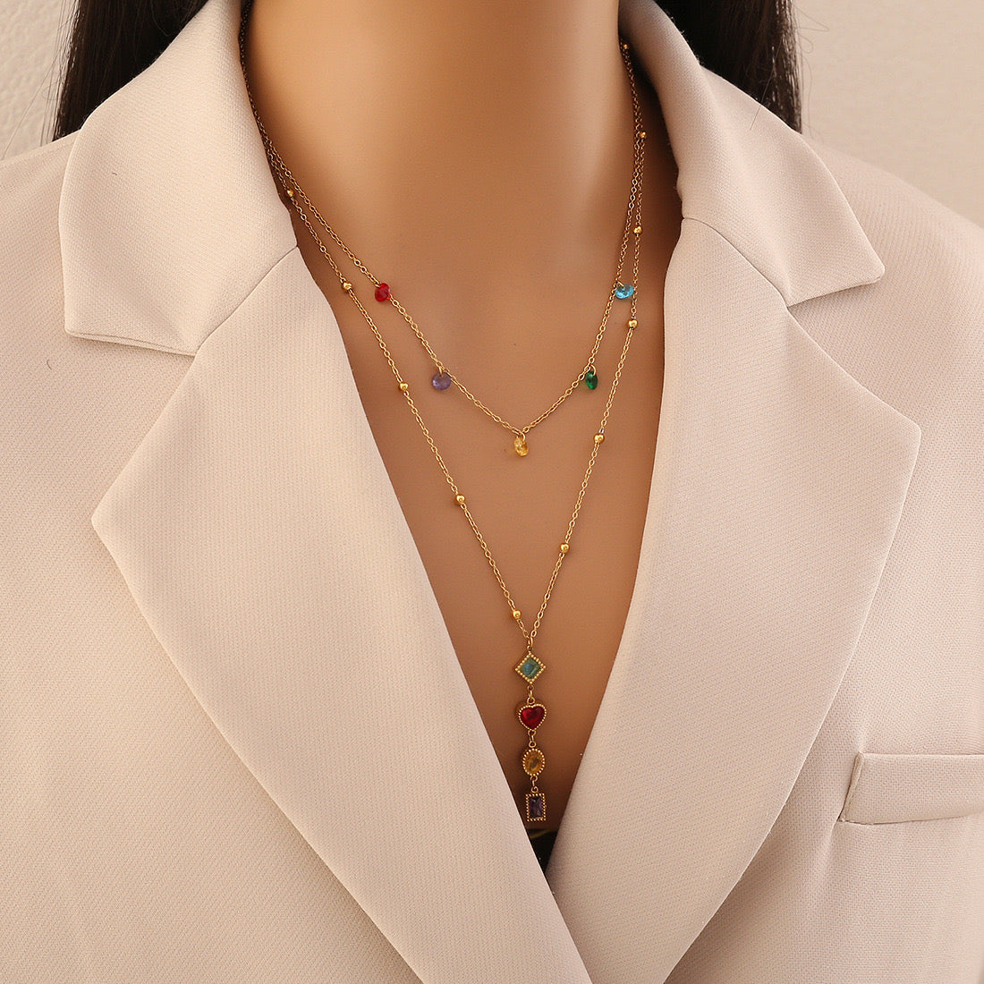 Multicolour Necklace, y shaped necklace, gold necklace, double layered necklace, gifts for girls, Pinteresty accessories, anti tarnish necklace, stainless steel necklace