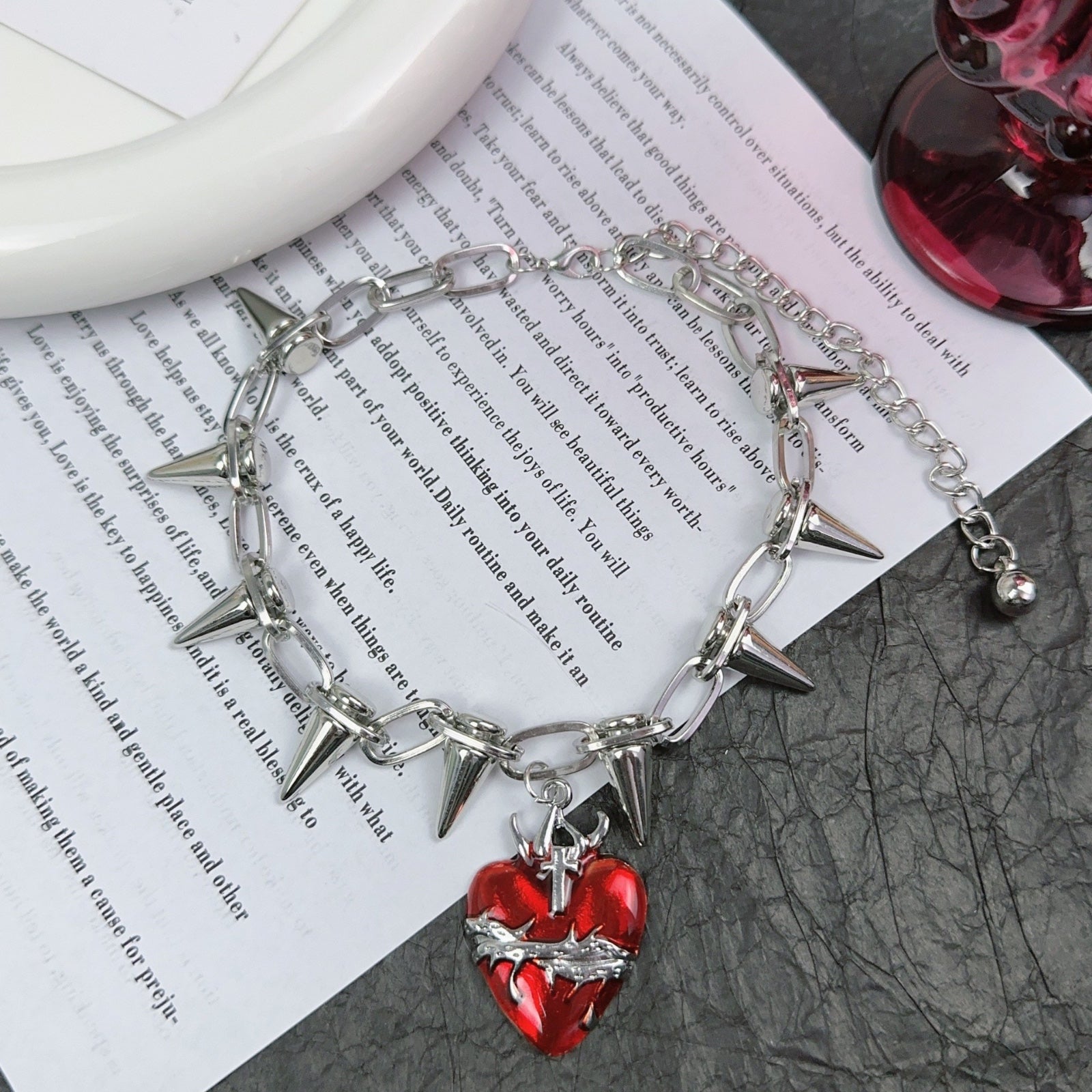 Heart necklace, red necklace, Silver necklace, grunge necklace, grunge accessories, gifts for girls, Halloween accessories, Halloween jewellery