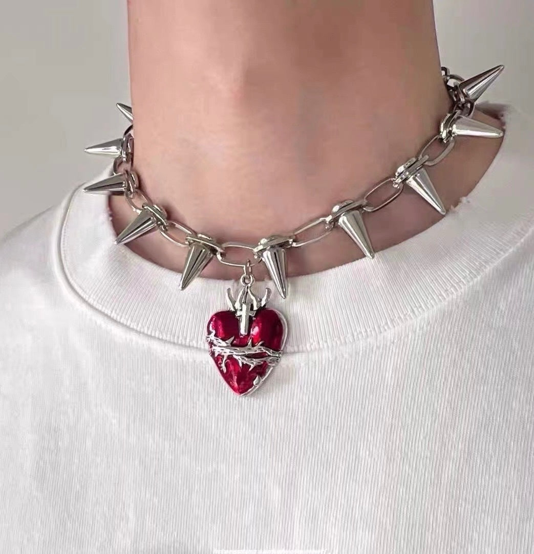 Crimson Thorns Heart Necklace