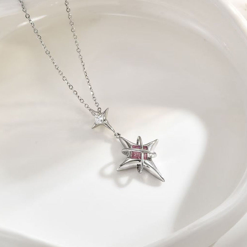 Pink necklace, star necklace, rhinestone necklace, silver necklace, gifts for girls, Pinteresty accessories