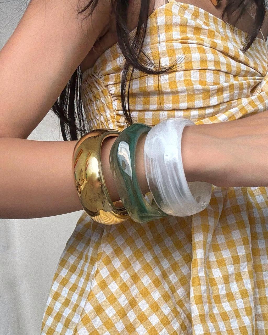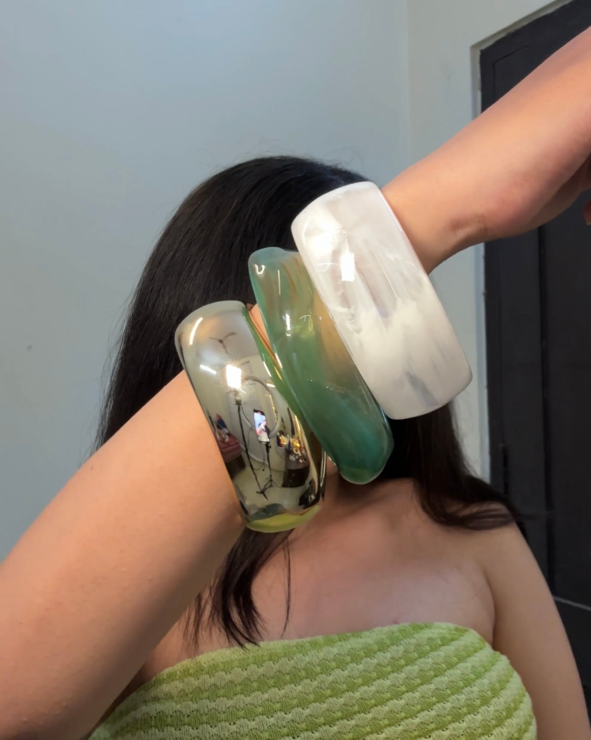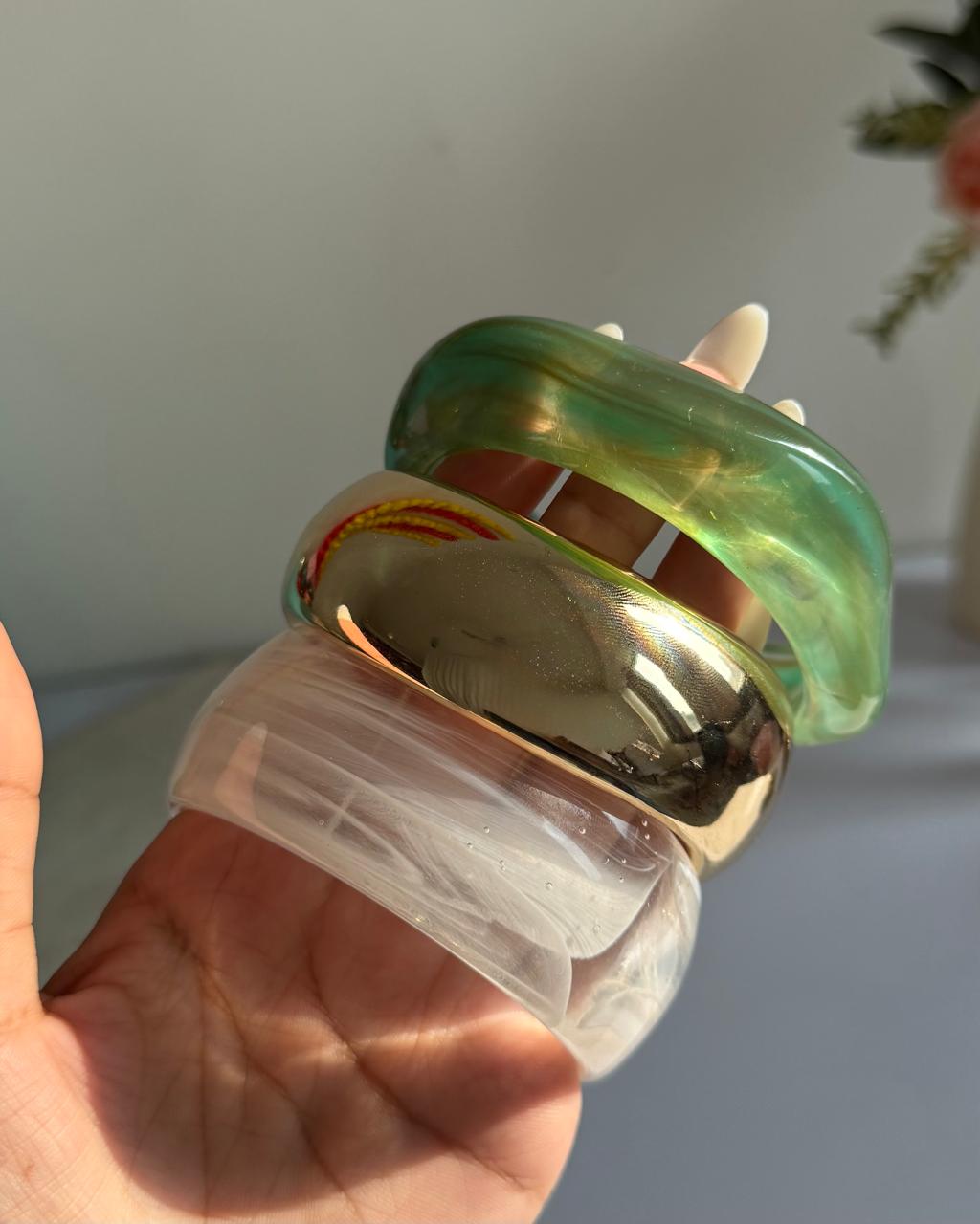 Viral bangles combo, resin bangles, green bangles, gold bangle, white bangle, bracelet, chunky bangles