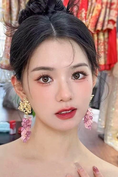 Pink earrings, purple earrings, gold earrings, party earrings, Pinteresty accessories, gifts for girls