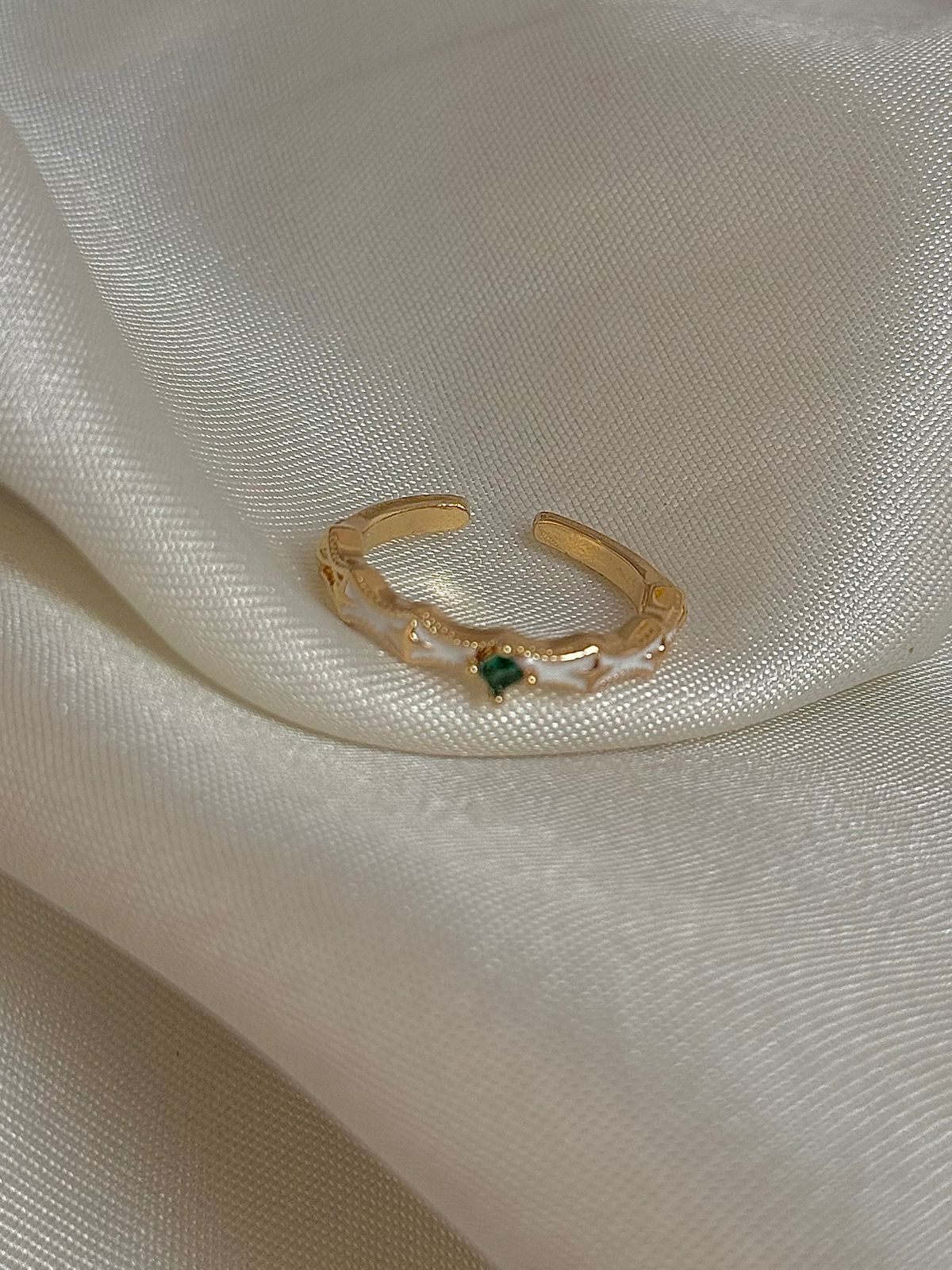 Green ring, gold jewellery, white ring, minimal jewelery, vintage ring, gold ring