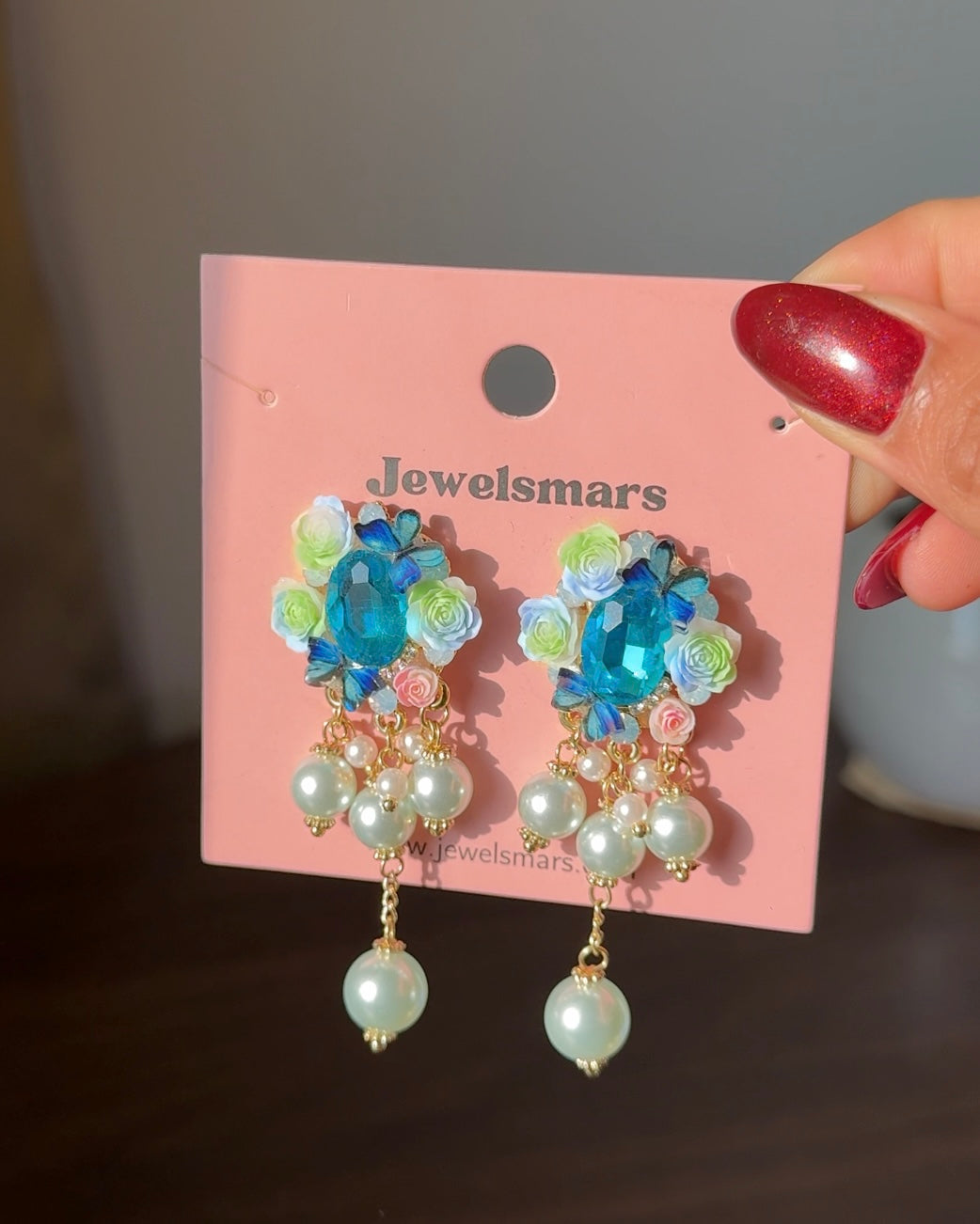 Gold earrings, blue earrings, pearl earrings, flower earrings, dreamy earrings, Pinteresty accessories, gifts for girls