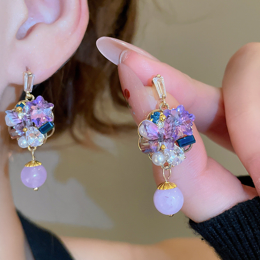 Purple earrings, gold earrings, butterfly earrings, dreamy earrings, Pinteresty accessories, gifts for girls