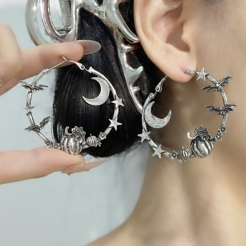 Hoop earrings, silver earrings, moon earrings, pumpkin earrings, star earrings, pinteresty accessories, gifts for girls