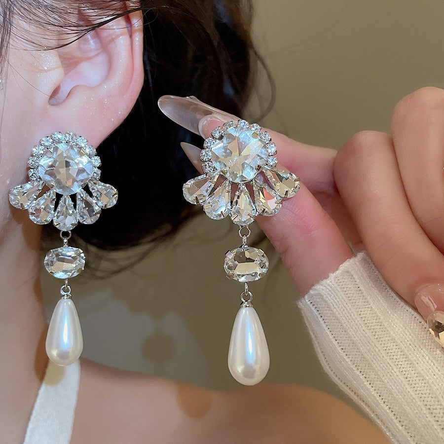 Pearl earrings, rhinestone earrings, party earrings, white earrings, Pinteresty accessories, gifts for girls