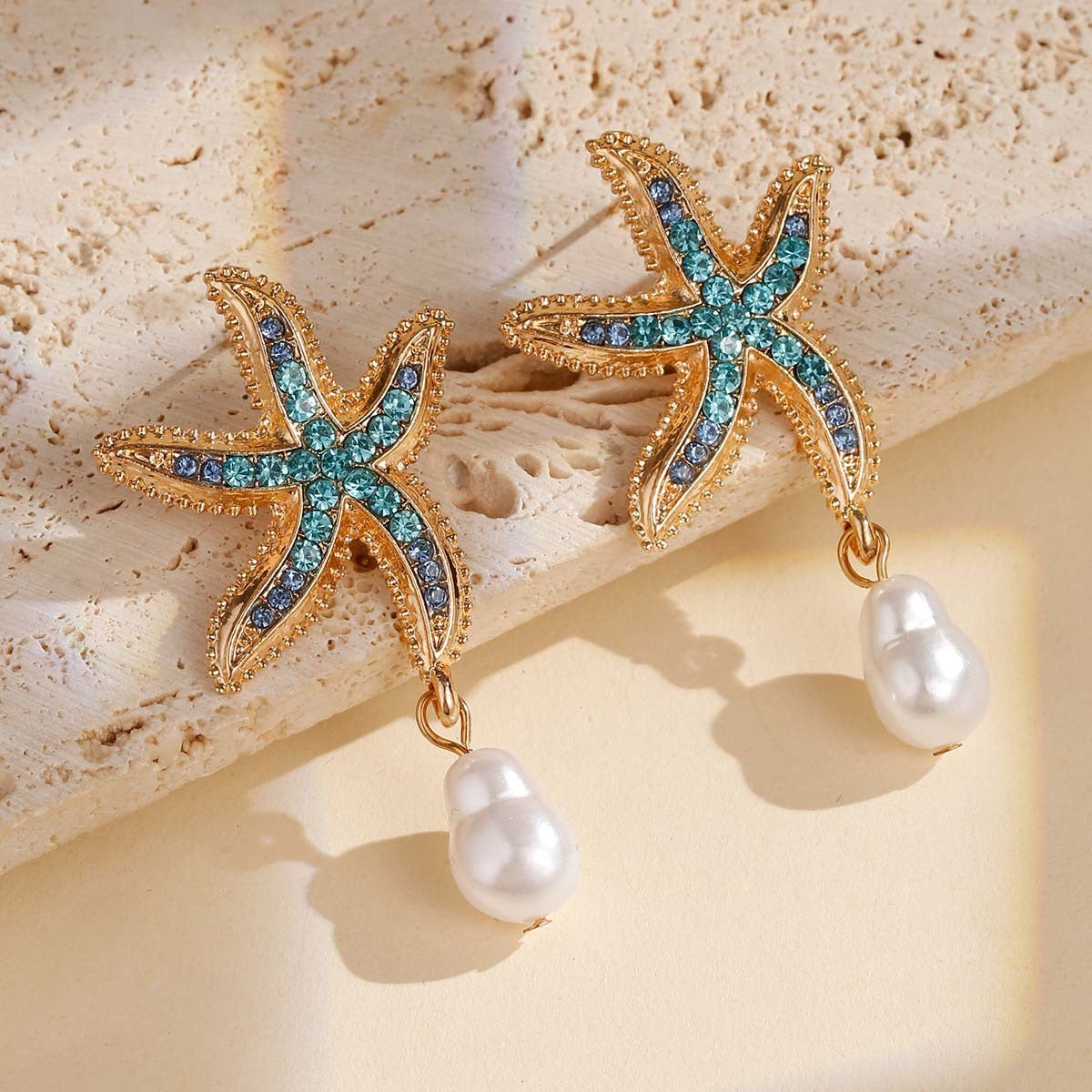 Blue earrings, star fish earrings, gold earrings, pearl earrings, beach earrings, pinteresty accessories, gifts for girls