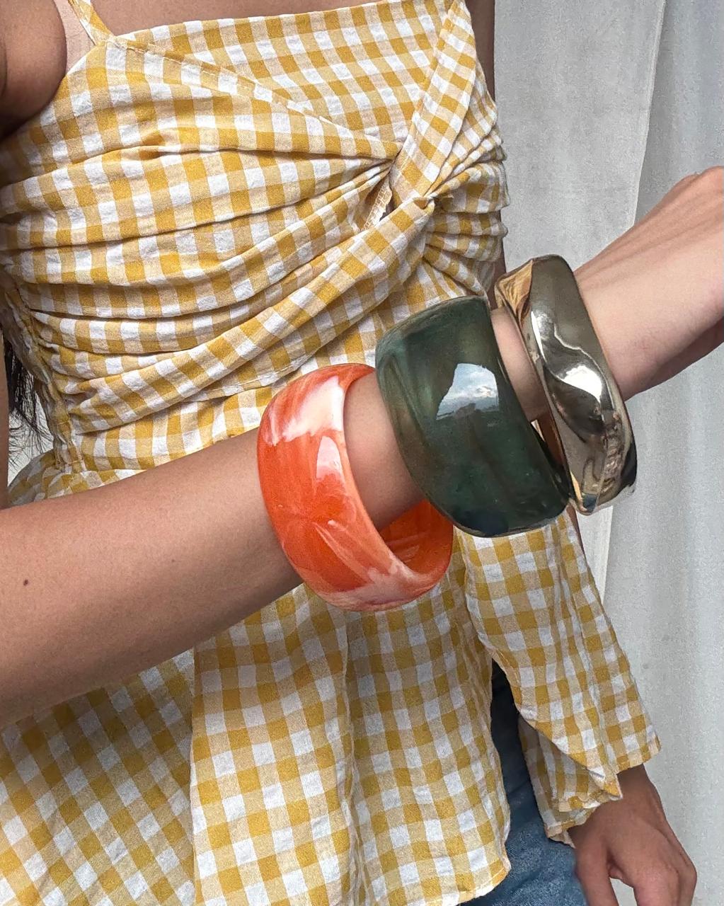 Viral bangles combo, resin bangles, orange bangles, gold bangle, green bangle, bracelet, chunky bangles