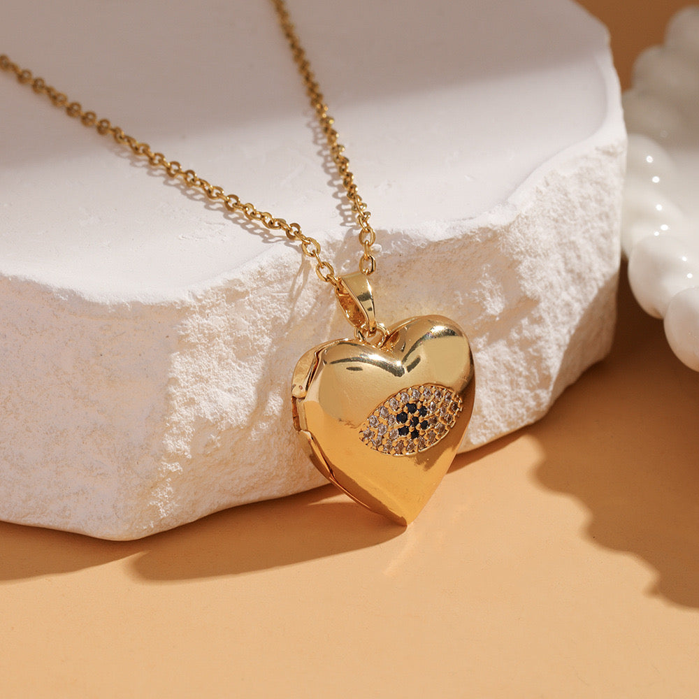 Heart necklace, gold necklace, evil eye necklace, locket, viral accessories, anti tarnish necklace, stainless steel necklace