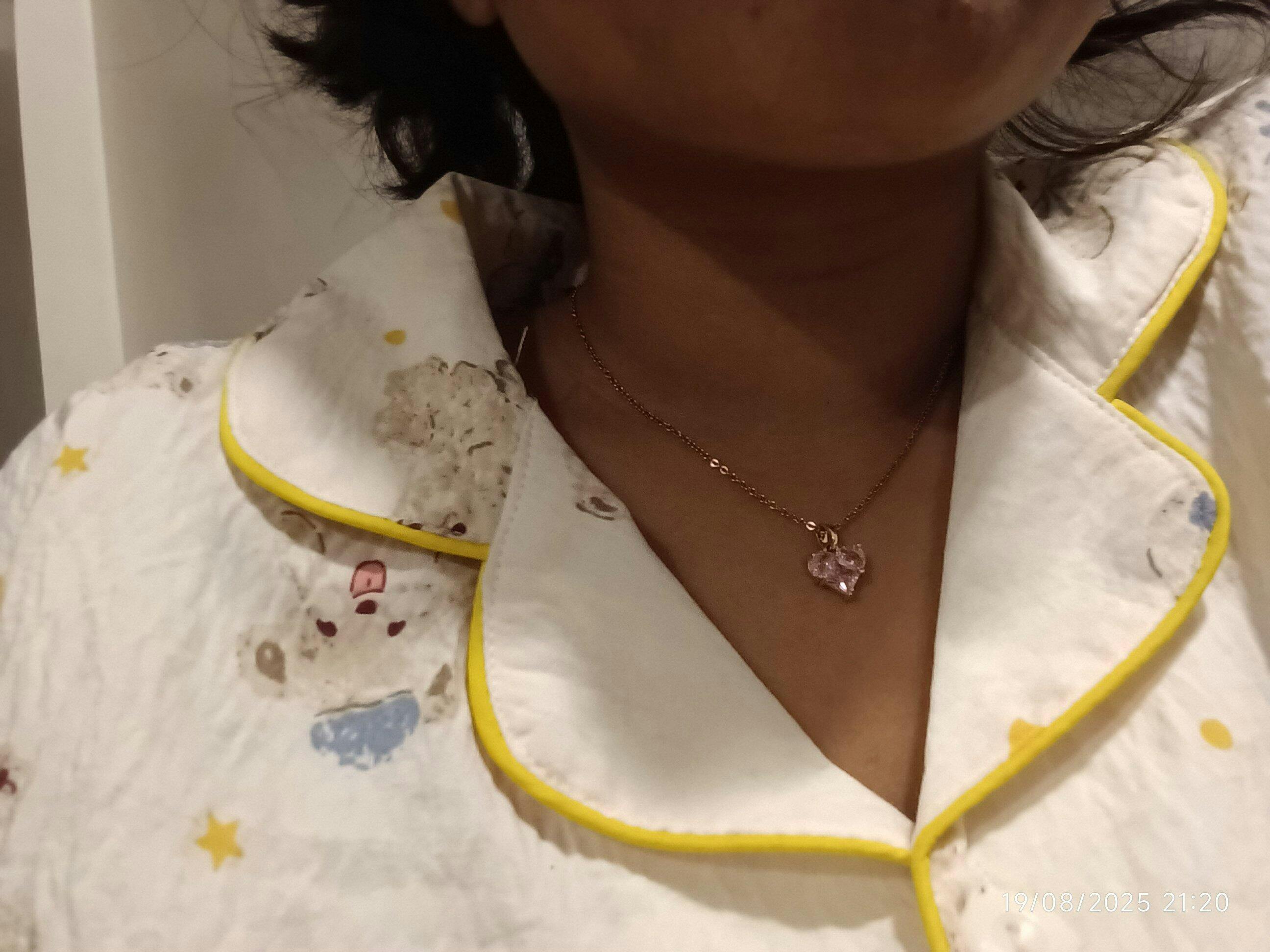 stainless steel necklace , golden necklace, anti tarnish necklace, anti tarnish jewellery, pink necklace, heart necklace, pink heart jewellery.
