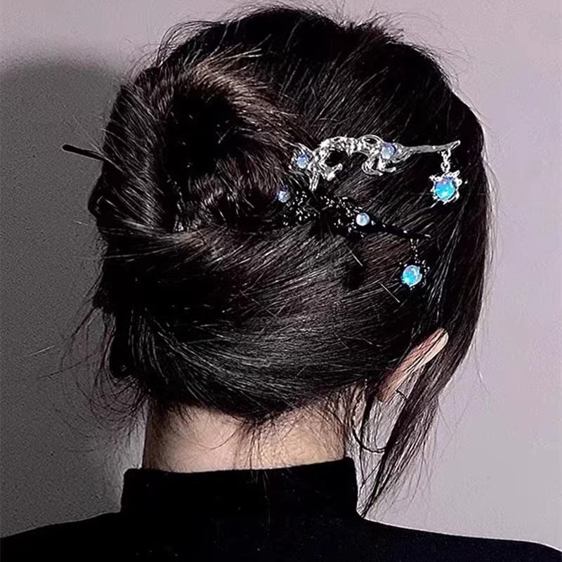 Grunge hair accessories, silver bun stick, blue bun stick, purple bun stick, Pinteresty bun stick, gifts for girls, baddie collection