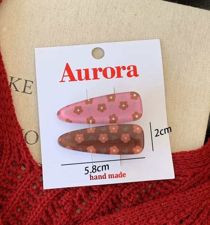 ⁠Pink hair clips, brown hair accessories, flower hair clip, cute hair accessories