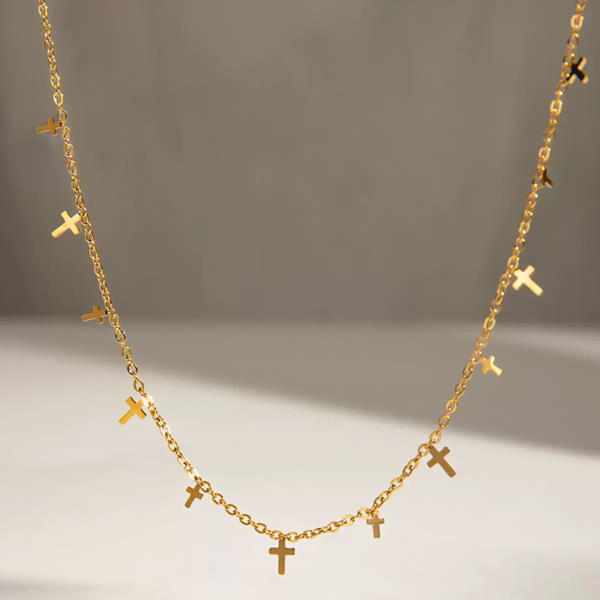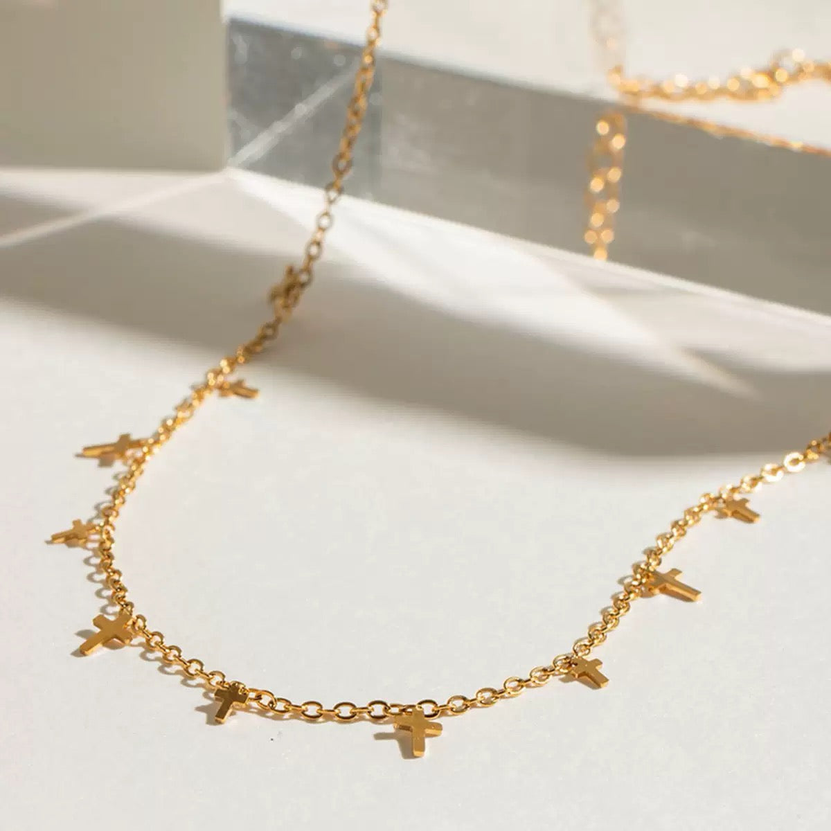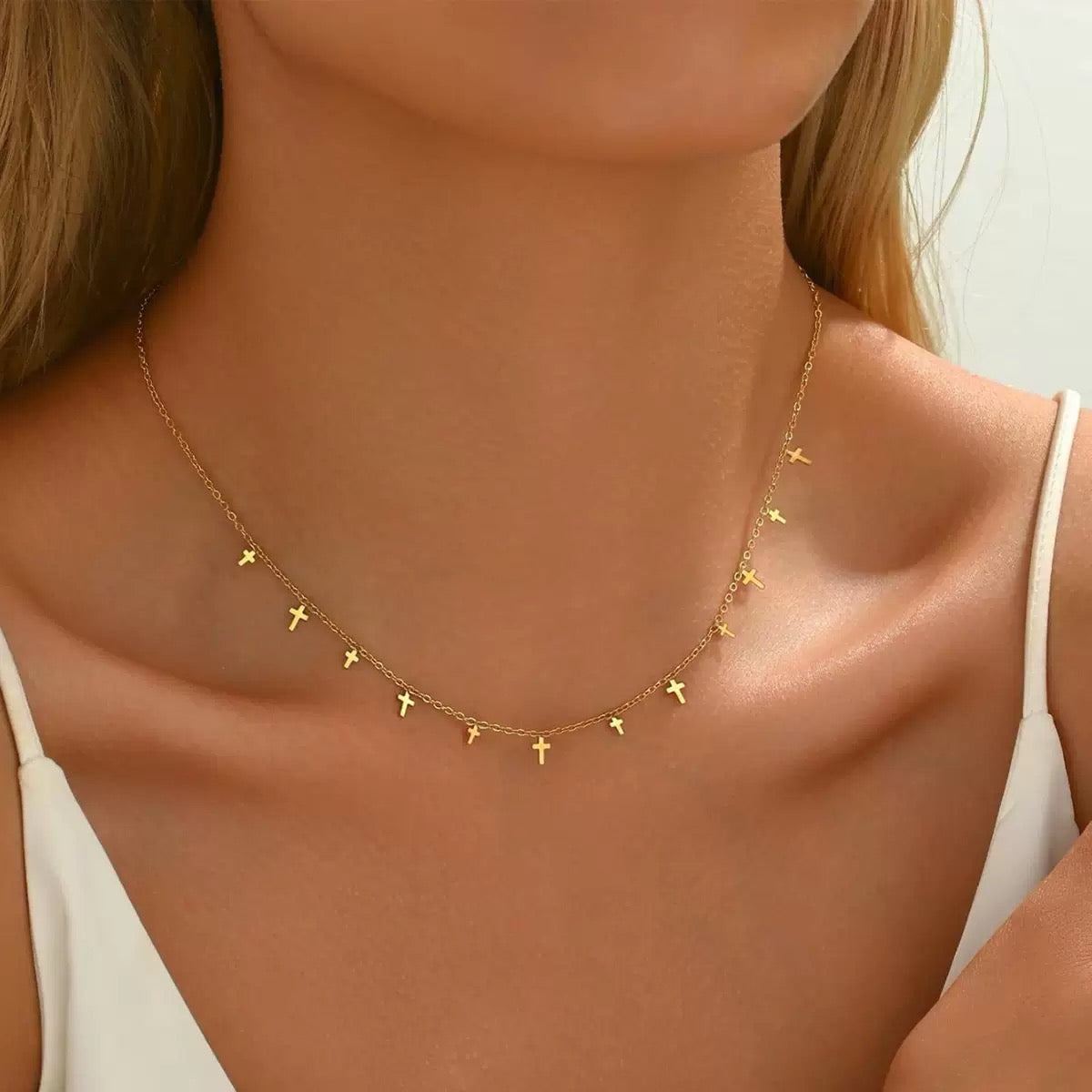 Gold necklace, cross necklace, gifts for girls, Pinteresty accessories, anti tarnish necklace, stainless steel necklace