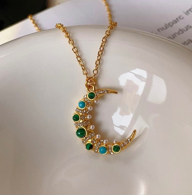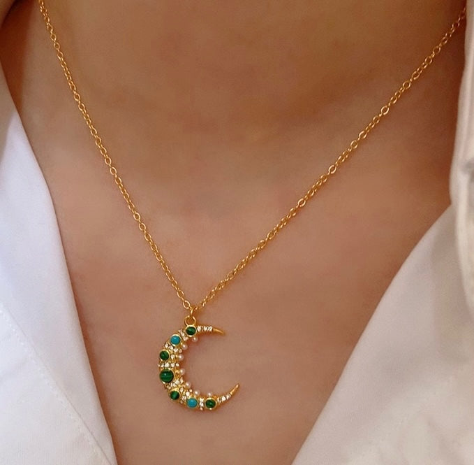 Gold necklace, moon necklace, green necklace, pearl necklace, blue necklace, gifts for girls, Pinteresty accessories, anti tarnish necklace, stainless steel necklace
