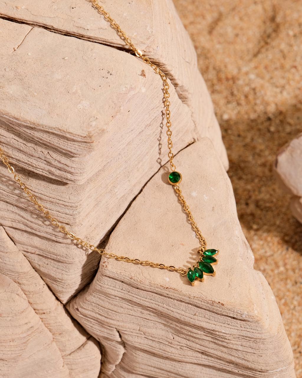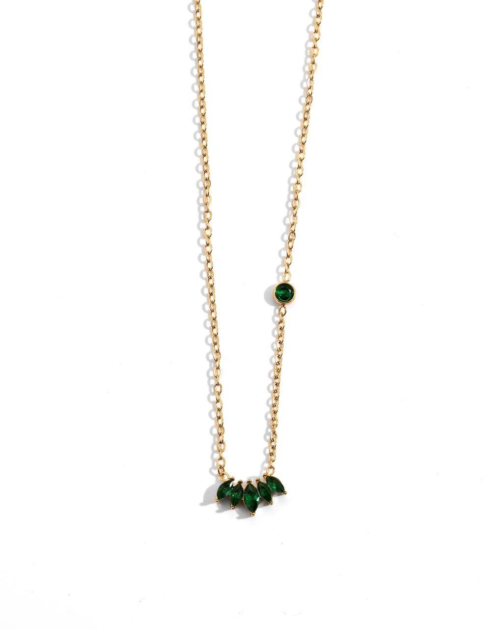 Green necklace, glam necklace, party necklace, necklace for dresses, charms necklace, gold necklace, anti tarnish necklace, gold plated necklace
