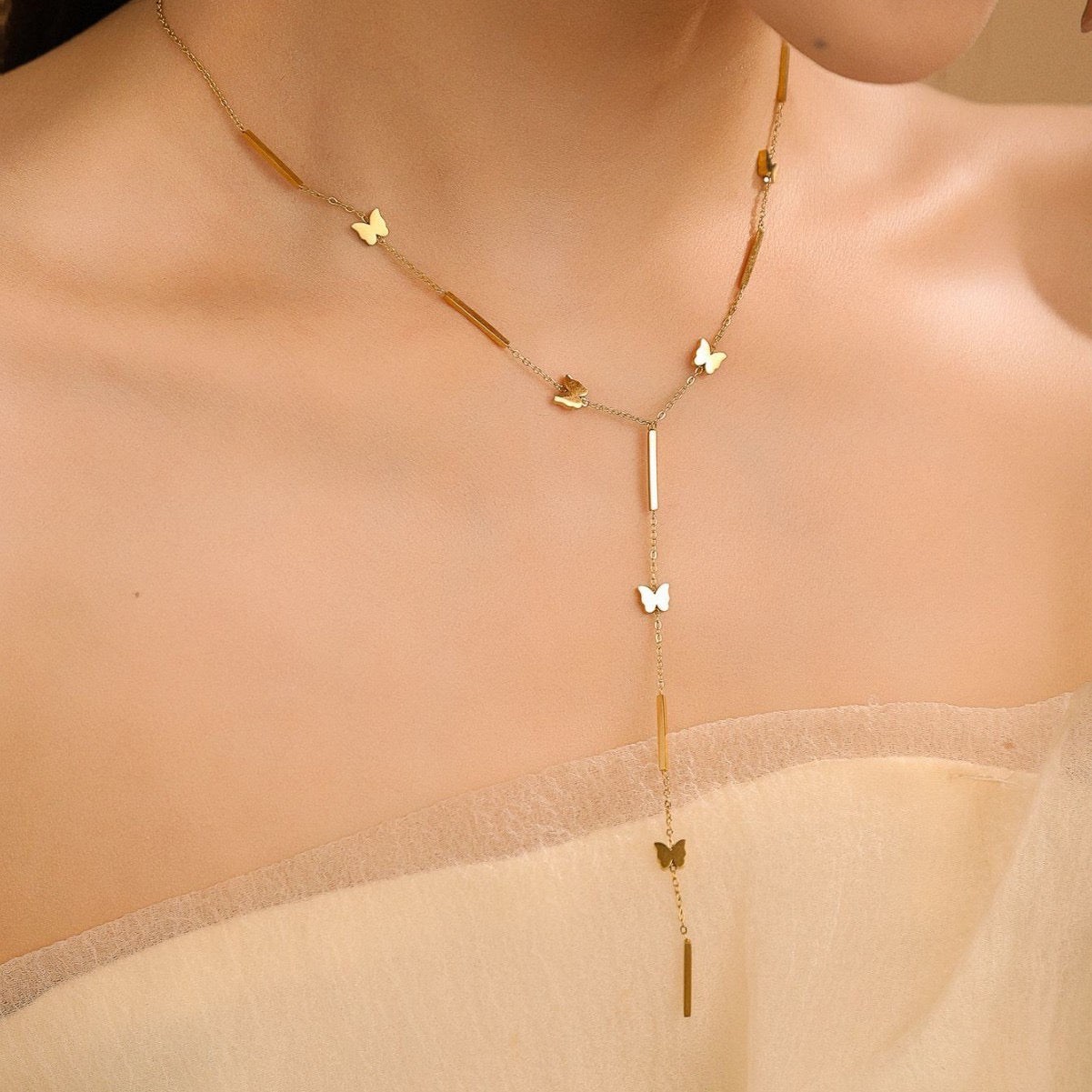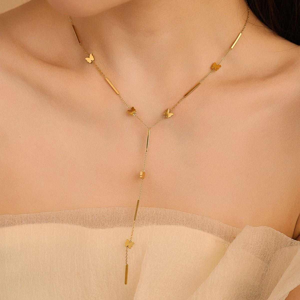 Gold necklace, butterfly necklace, statement necklace, gifts for girls, Pinteresty accessories, anti tarnish necklace, stainless steel necklace
