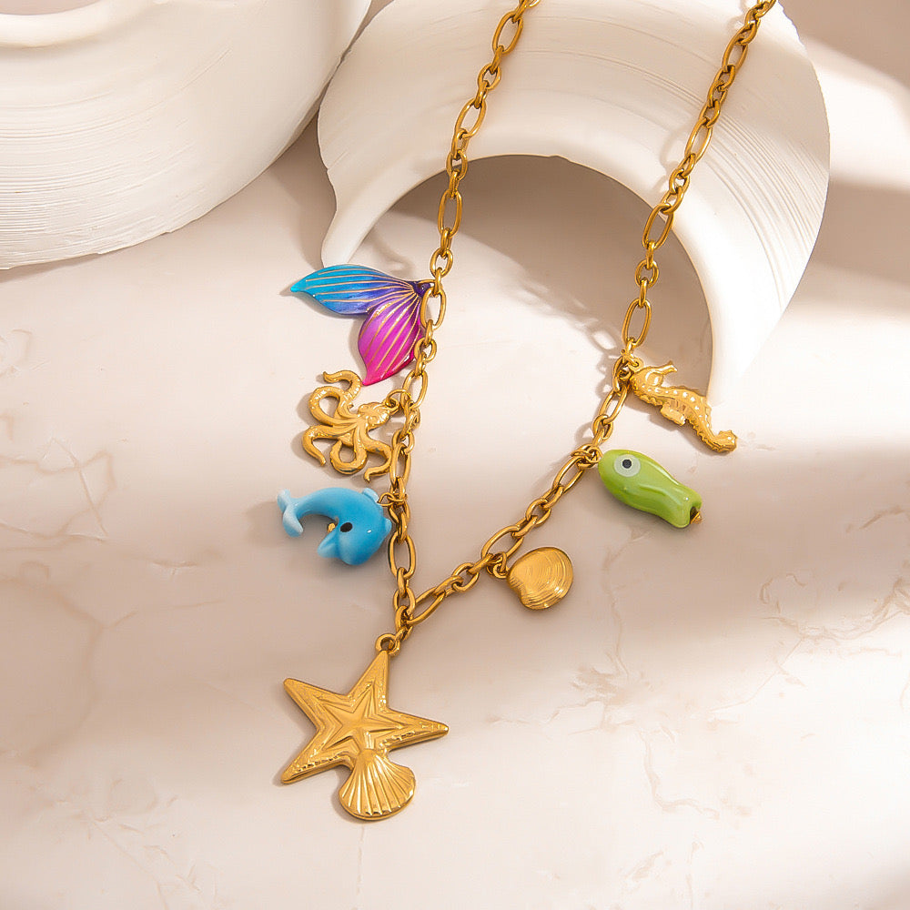 Star fish necklace, gold necklace, blue necklace, mermaid necklace, gifts for girls, Pinteresty accessories, anti tarnish necklace, stainless steel necklace, beach necklace