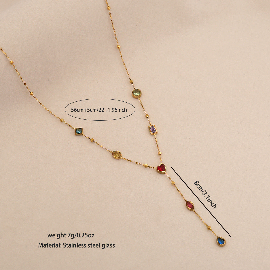 Y-shaped necklace, gold necklace, rhinestones necklace, multicoloured necklace, gifts for girls, Pinteresty accessories, anti tarnish necklace