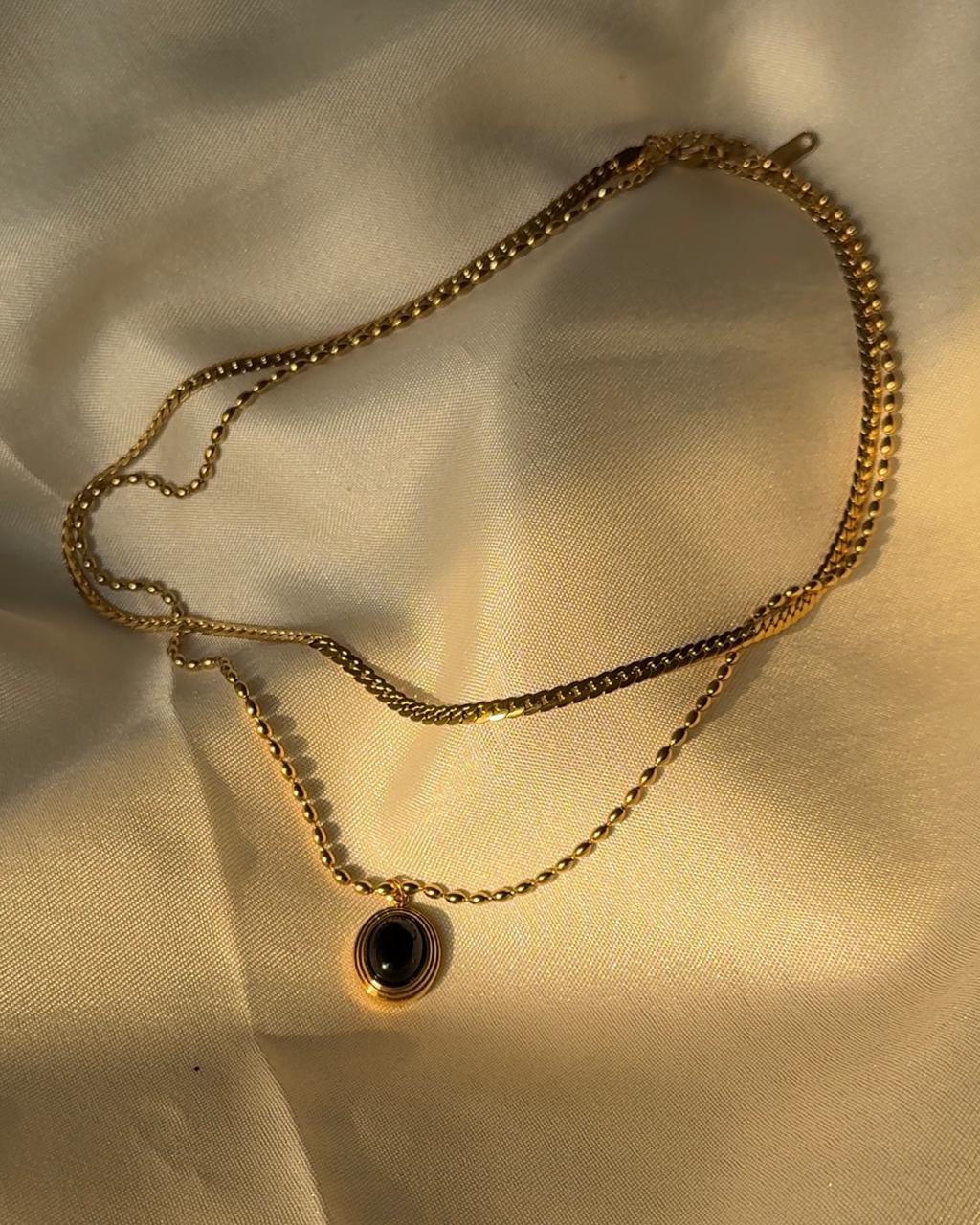 Gold necklace, vintage necklace, black necklace, old money jewellery, charm necklace, Pinterest inspired jewellery, anti tarnish necklace, stainless steel necklace, gold jewellery