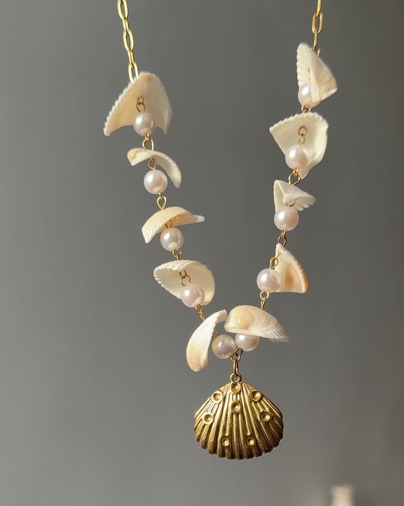 Gold necklace, pearl necklace, white necklace, beach necklace, shell necklace, Pinterest inspired jewellery, anti tarnish necklace, stainless steel necklace, gold jewellery