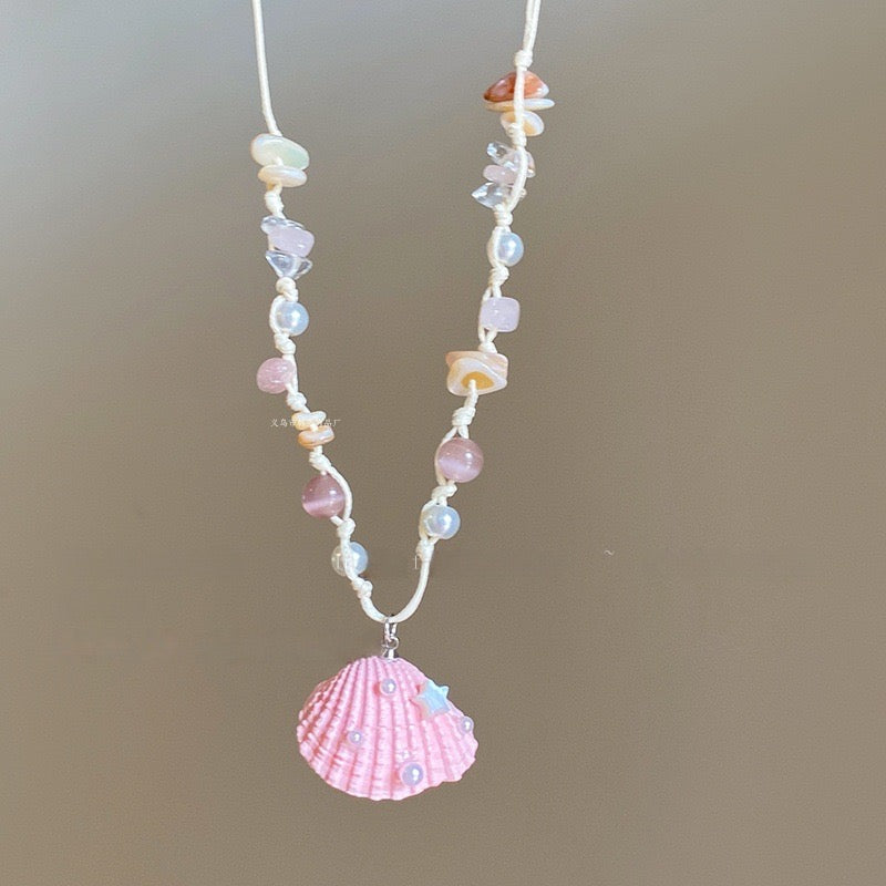 Pearl necklace, pink necklace, beaded necklace, shell necklace, silver necklace, gifts for girls, Halloween accessories