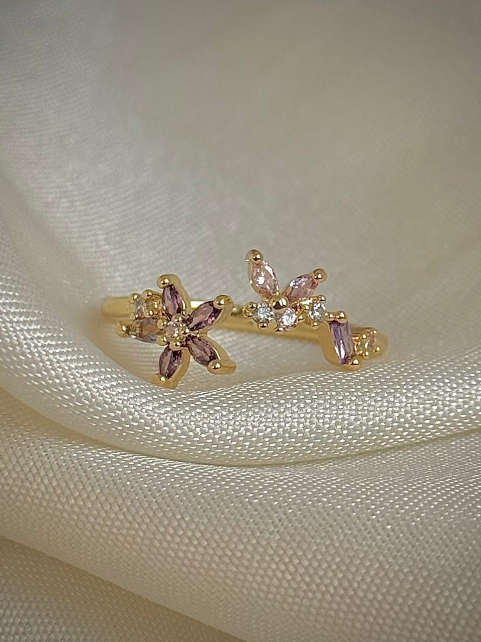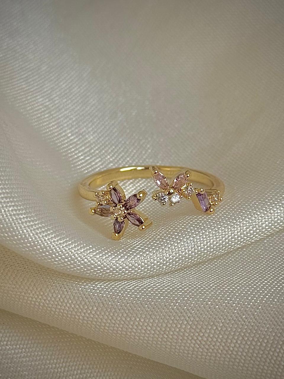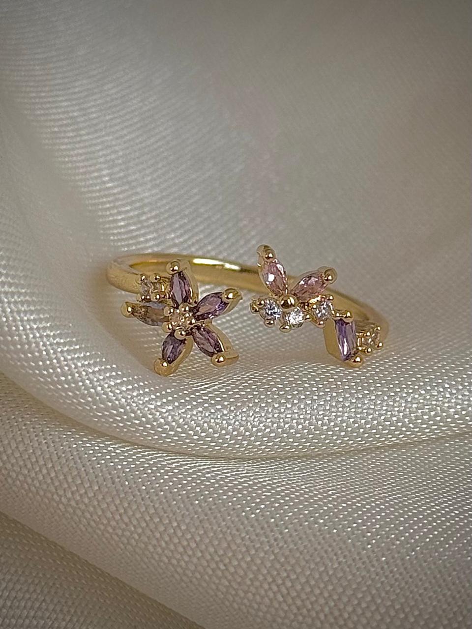 Purple ring, gold ring, flower ring, dreamy jewelery, dreamy ring, rhinestone ring