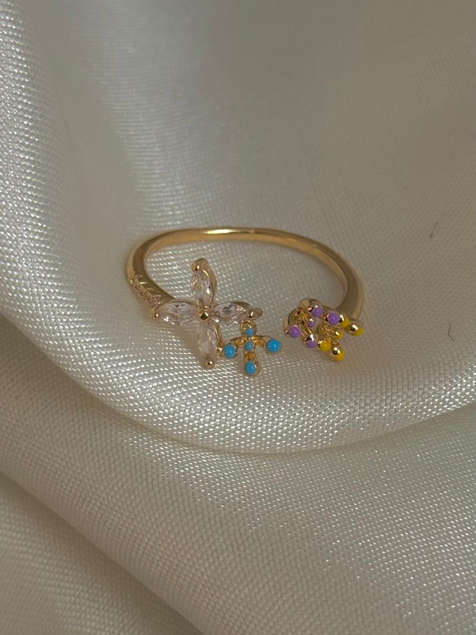 White ring, gold ring, blue ring, dreamy jewelery, dreamy ring, purple ring, flower ring
