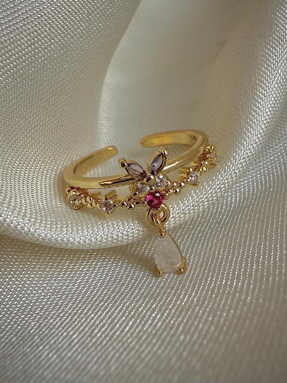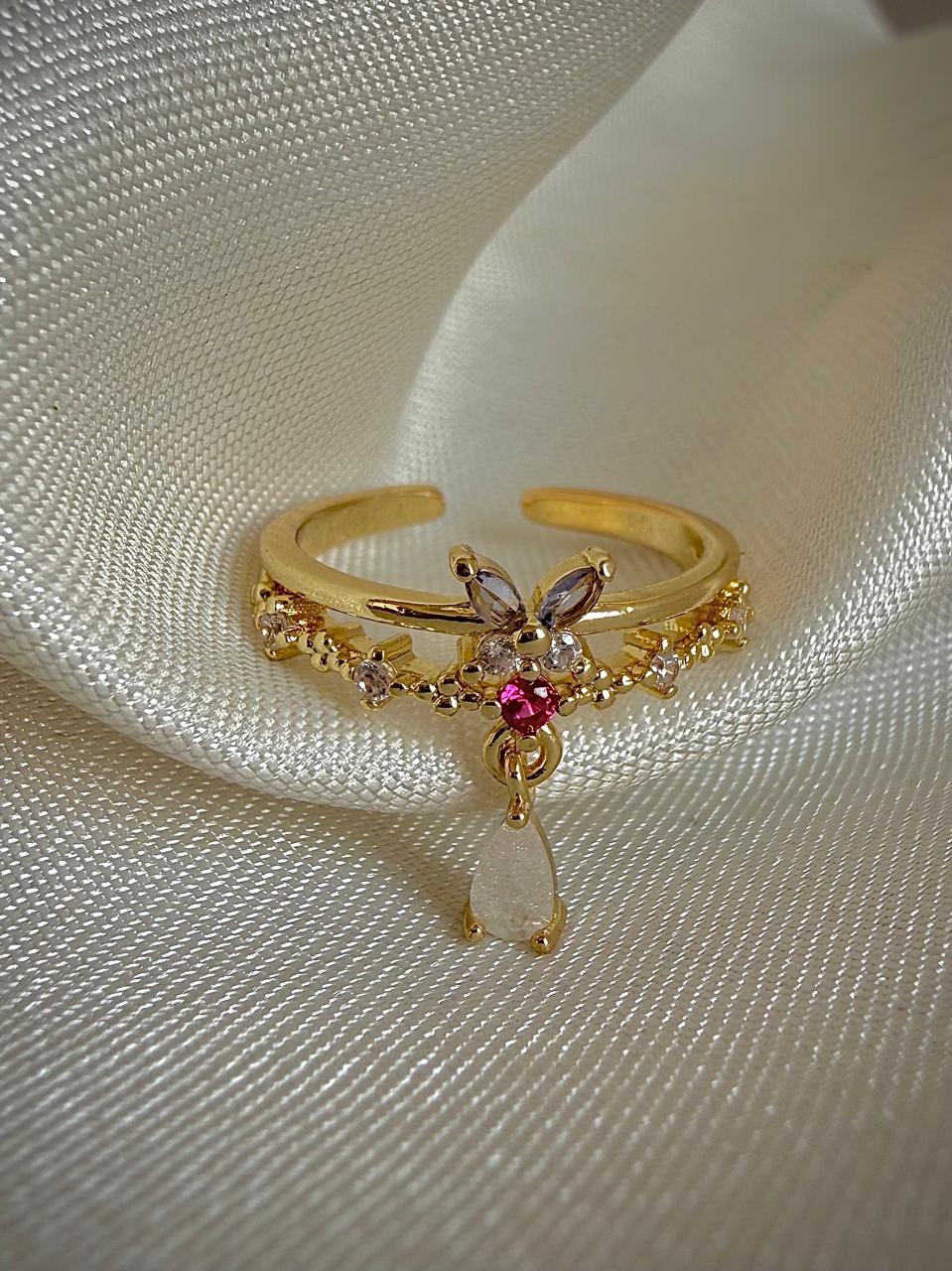 Butterfly ring, gold ring, white ring, dreamy jewelery, dreamy ring, pink ring
