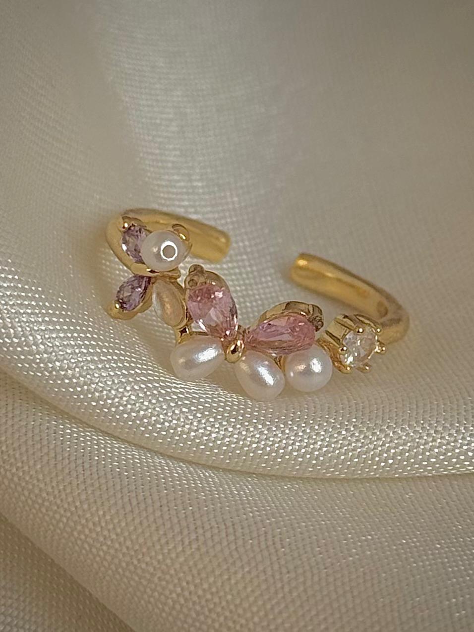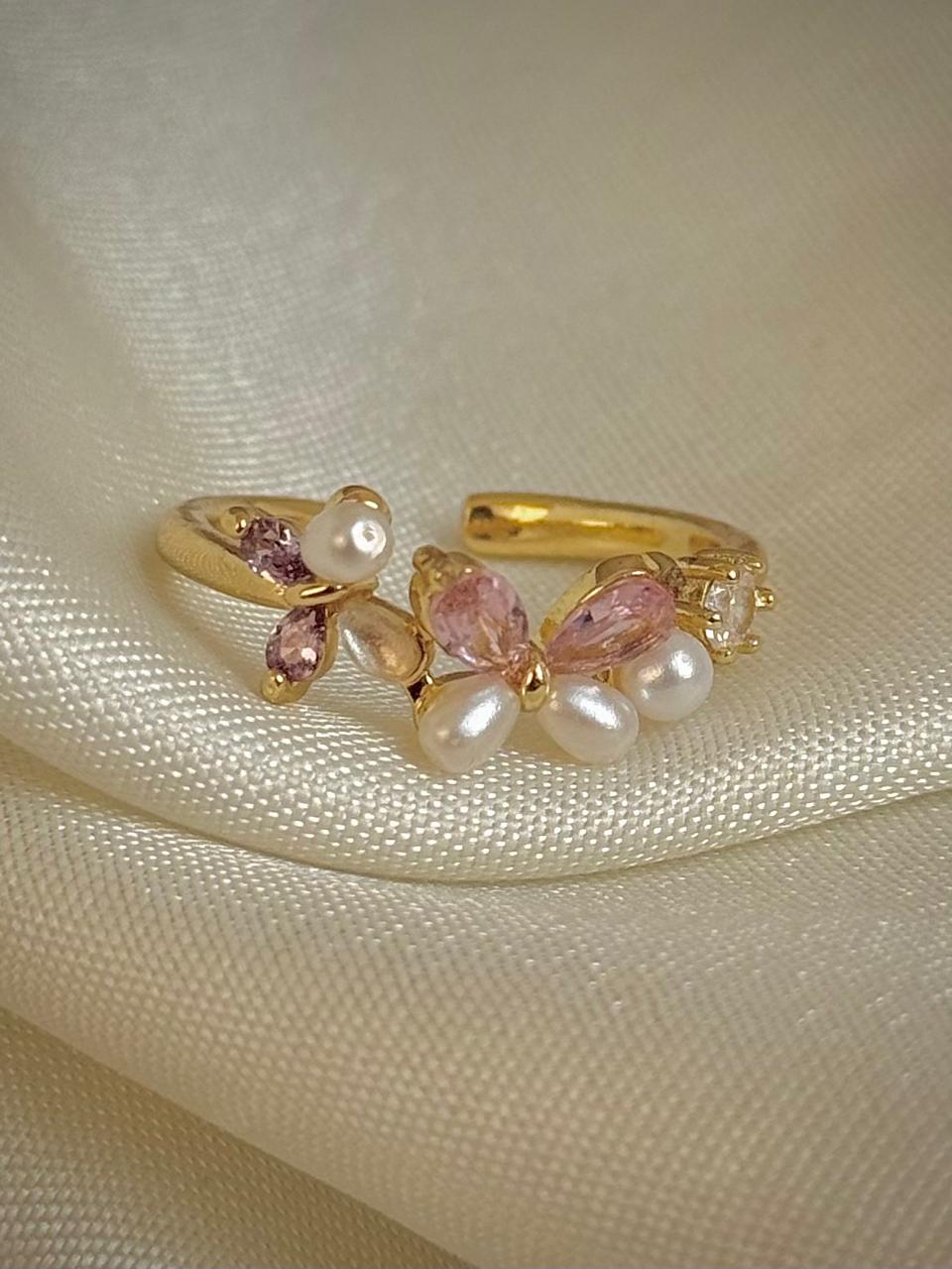 Pink ring, gold ring, butterfly ring, dreamy jewelery, dreamy ring, pearl ring