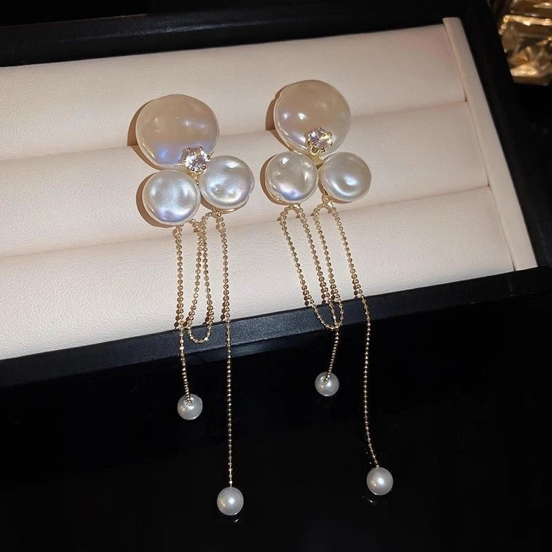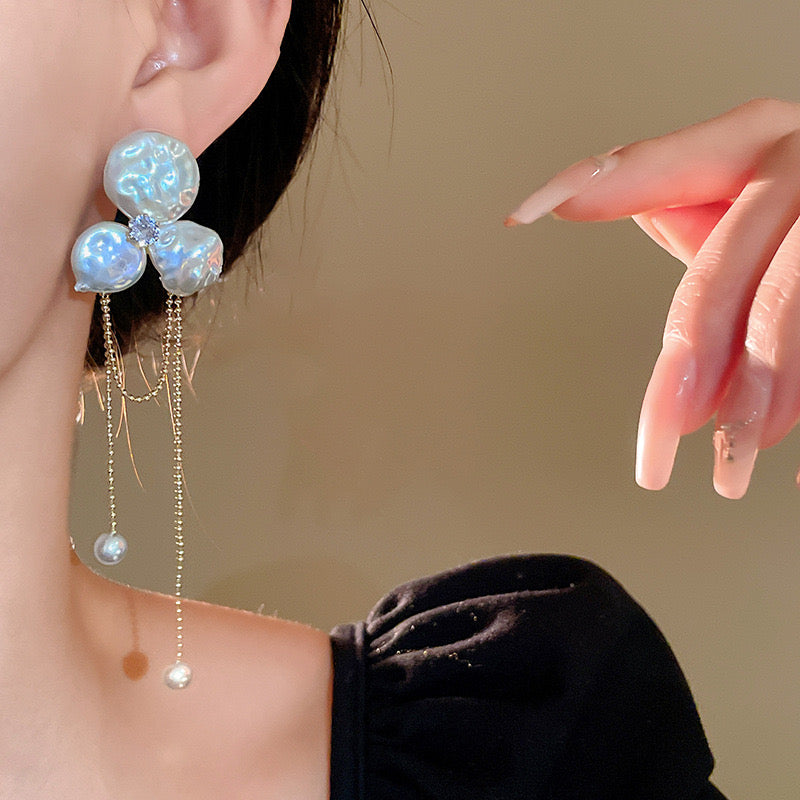 Gold earrings, pearl earrings, flower earrings, party earrings, Pinteresty accessories, gifts for girls, white earrings