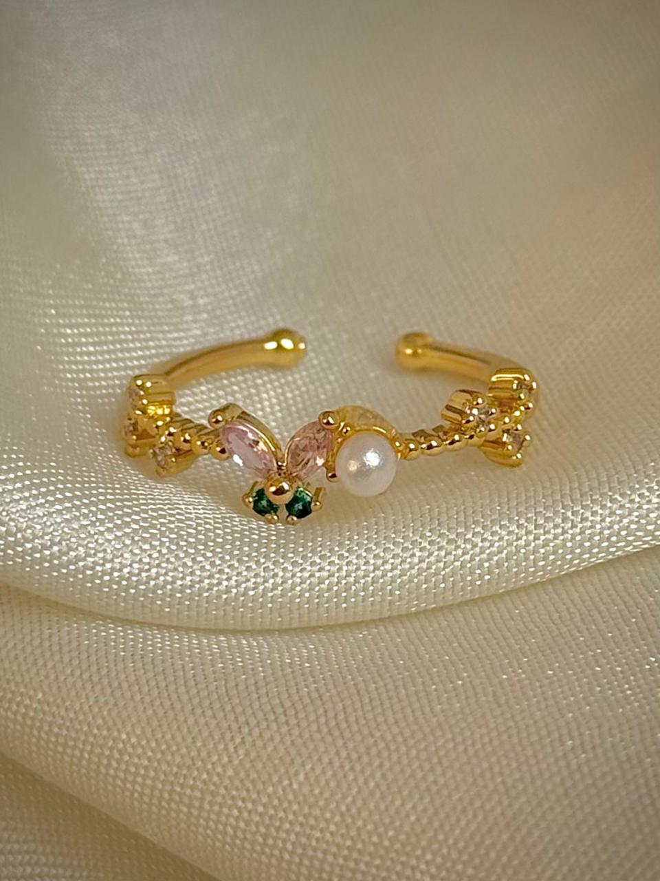 Pink ring, gold ring, butterfly ring, dreamy jewelery, dreamy ring, pearl ring