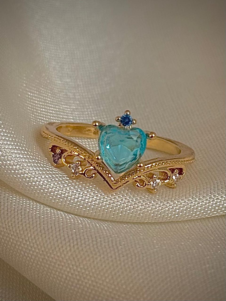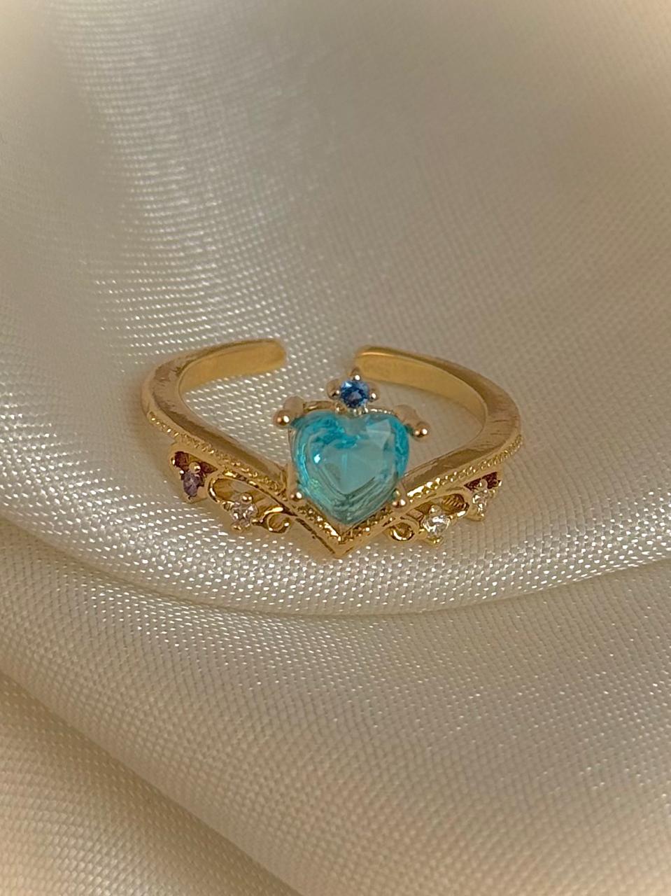 Blue ring, gold ring, princess ring, dreamy jewelery, dreamy ring, heart ring