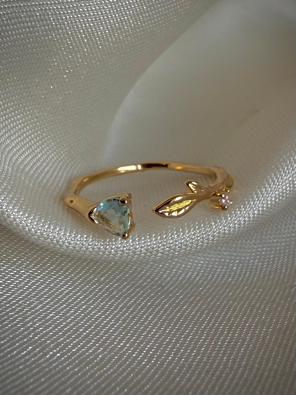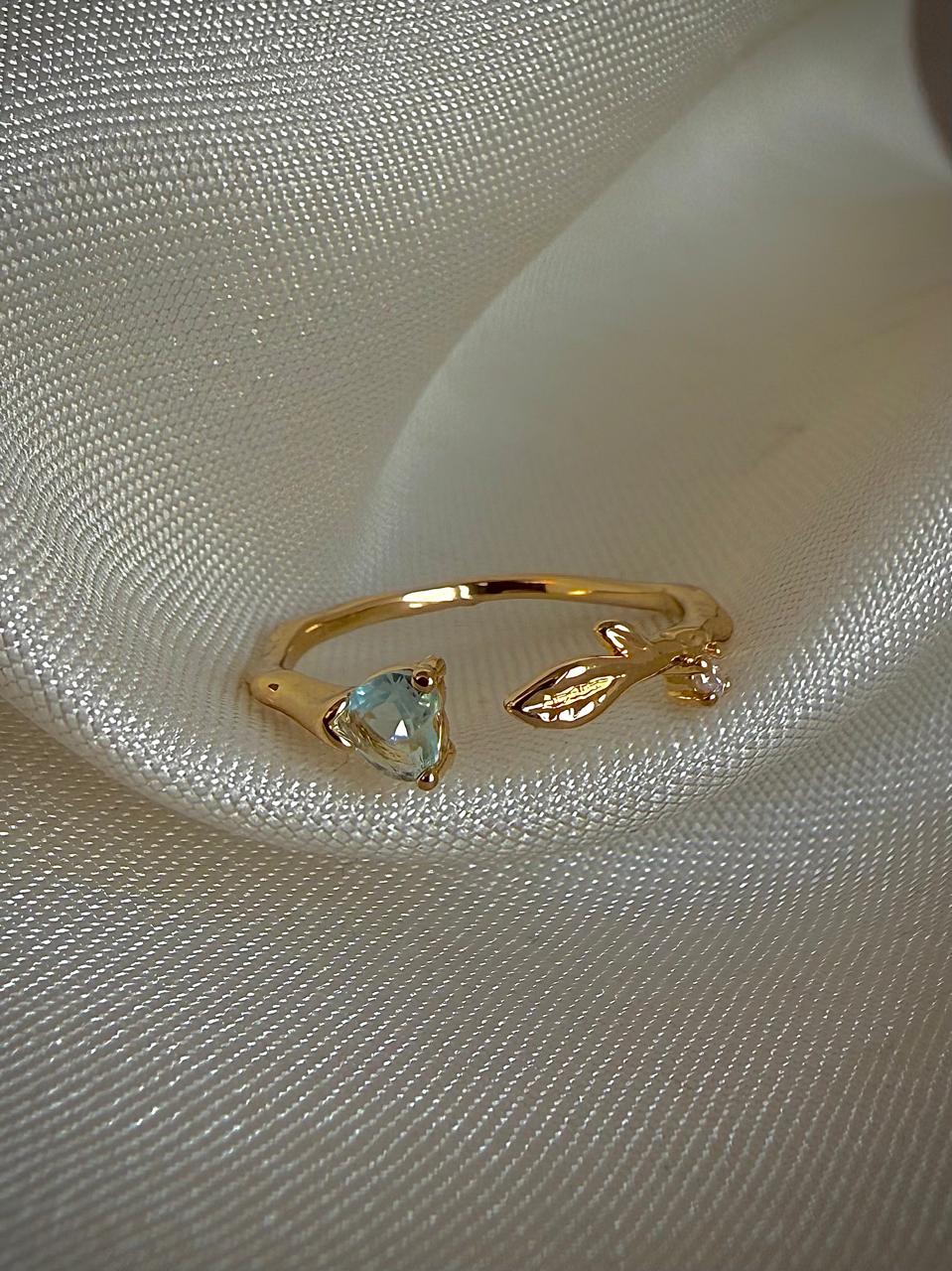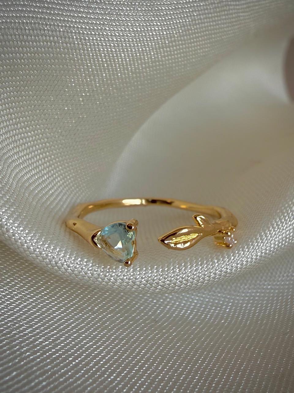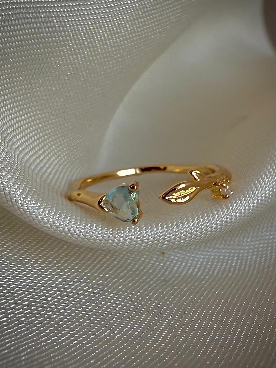 Leaf shaped ring, gold ring, blue stone ring, dreamy jewelery, dreamy ring, rhinestone ring