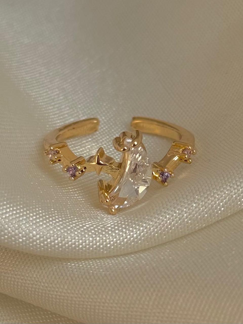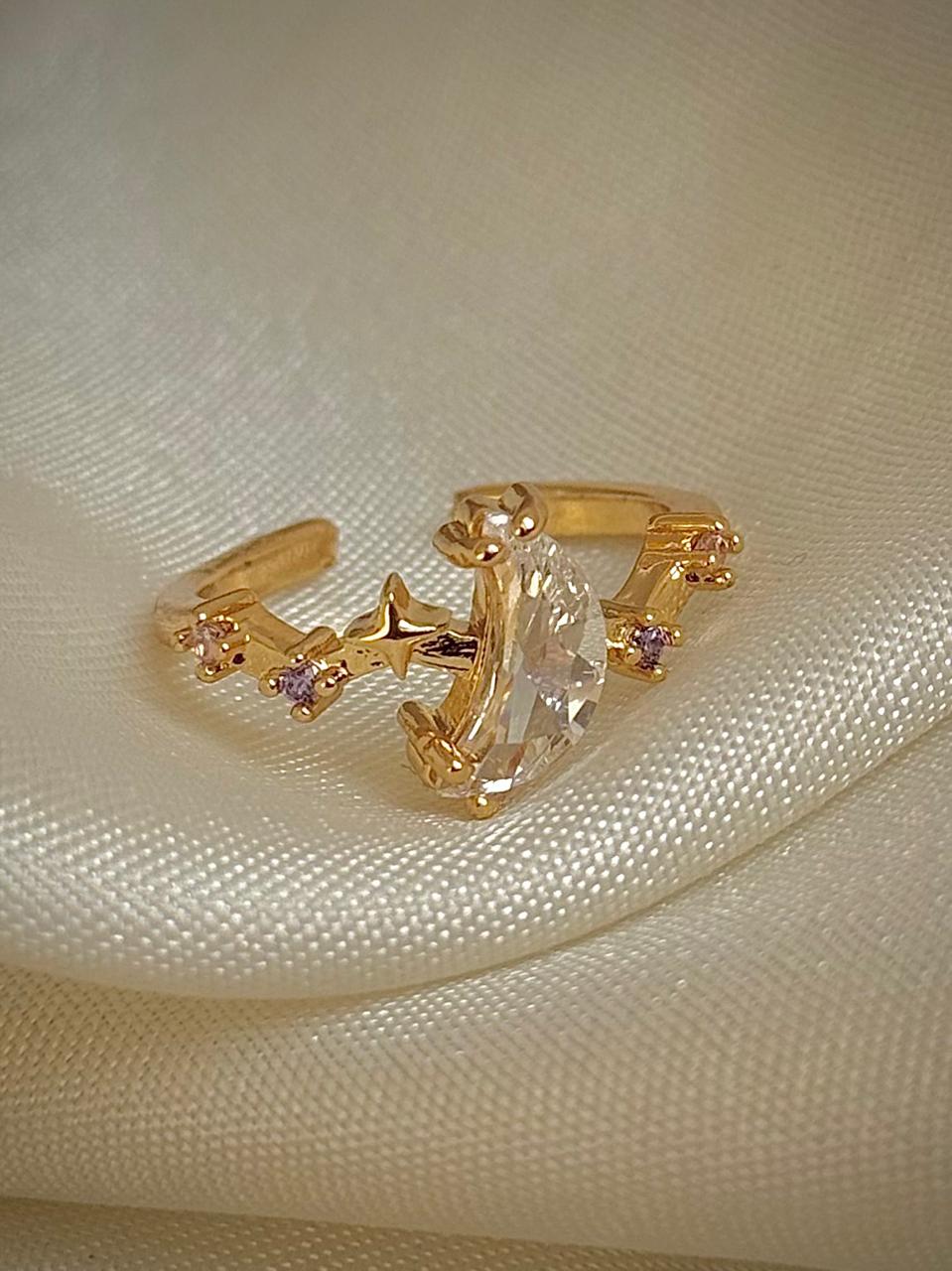 Moon ring, gold ring, star ring, dreamy jewelery, dreamy ring, rhinestone ring, purple ring