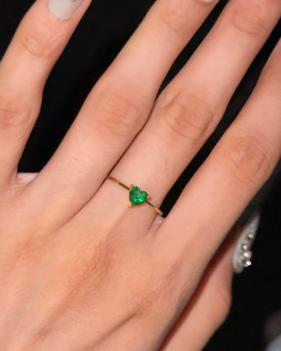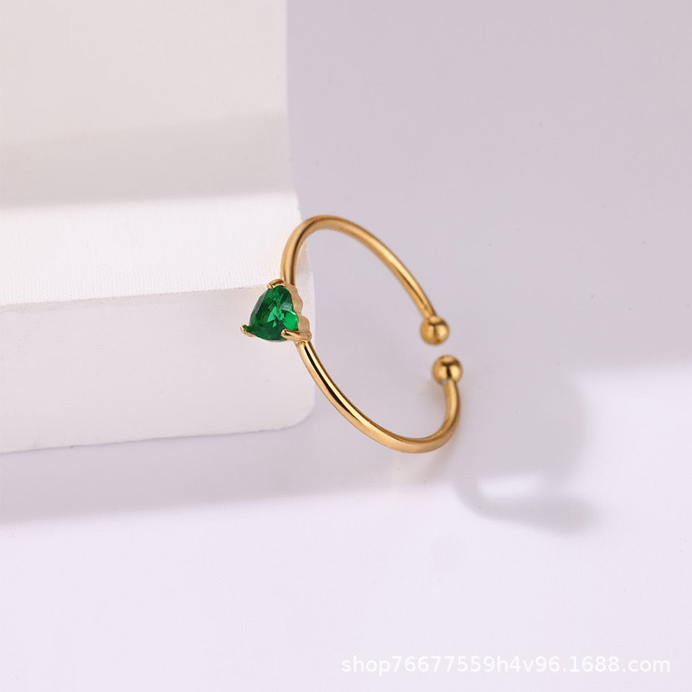Gold ring, heart ring, green ring, anti tarnish ring, stainless steel ring, gifts for girls