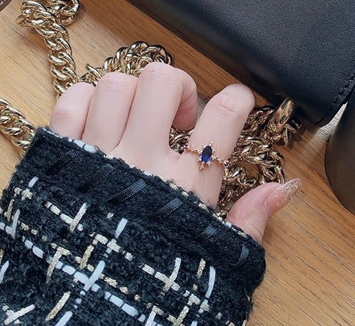Blue ring, gold ring, rhinestone ring, dreamy jewelery, dreamy ring