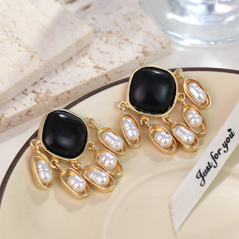 Pearl earrings, black earrings, party earrings, gold earrings, Pinteresty accessories, gifts for girls