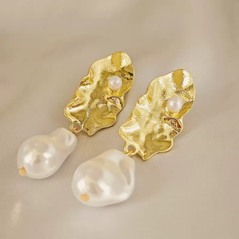 White earrings, gold earrings, pearl earrings, hammered earrings, Pinteresty accessories, gifts for girls