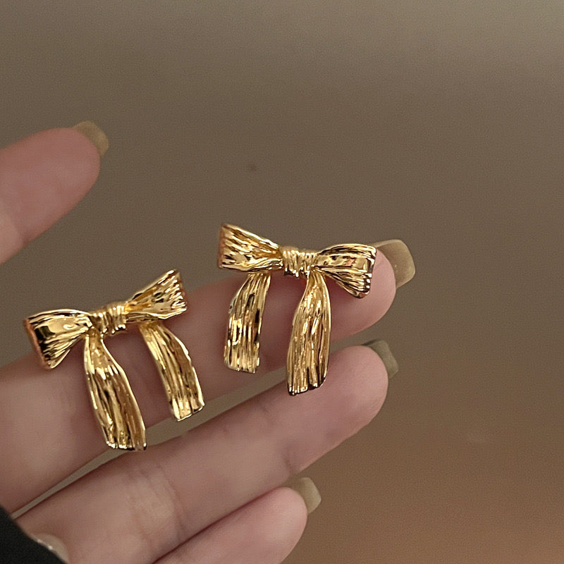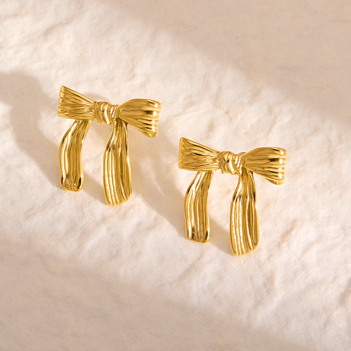 Gold earrings, bow earrings, bow accessories, Pinterest inspired accessories, Pinteresty jewellery, Anti tarnish earrings, gold jewellery