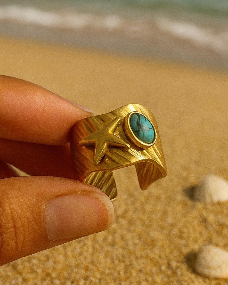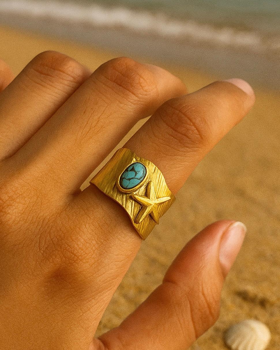 Gold rings, star fish ring, blue ring, beach ring, Pinterest inspired jewellery, anti tarnish ring, stainless steel ring, gold jewellery