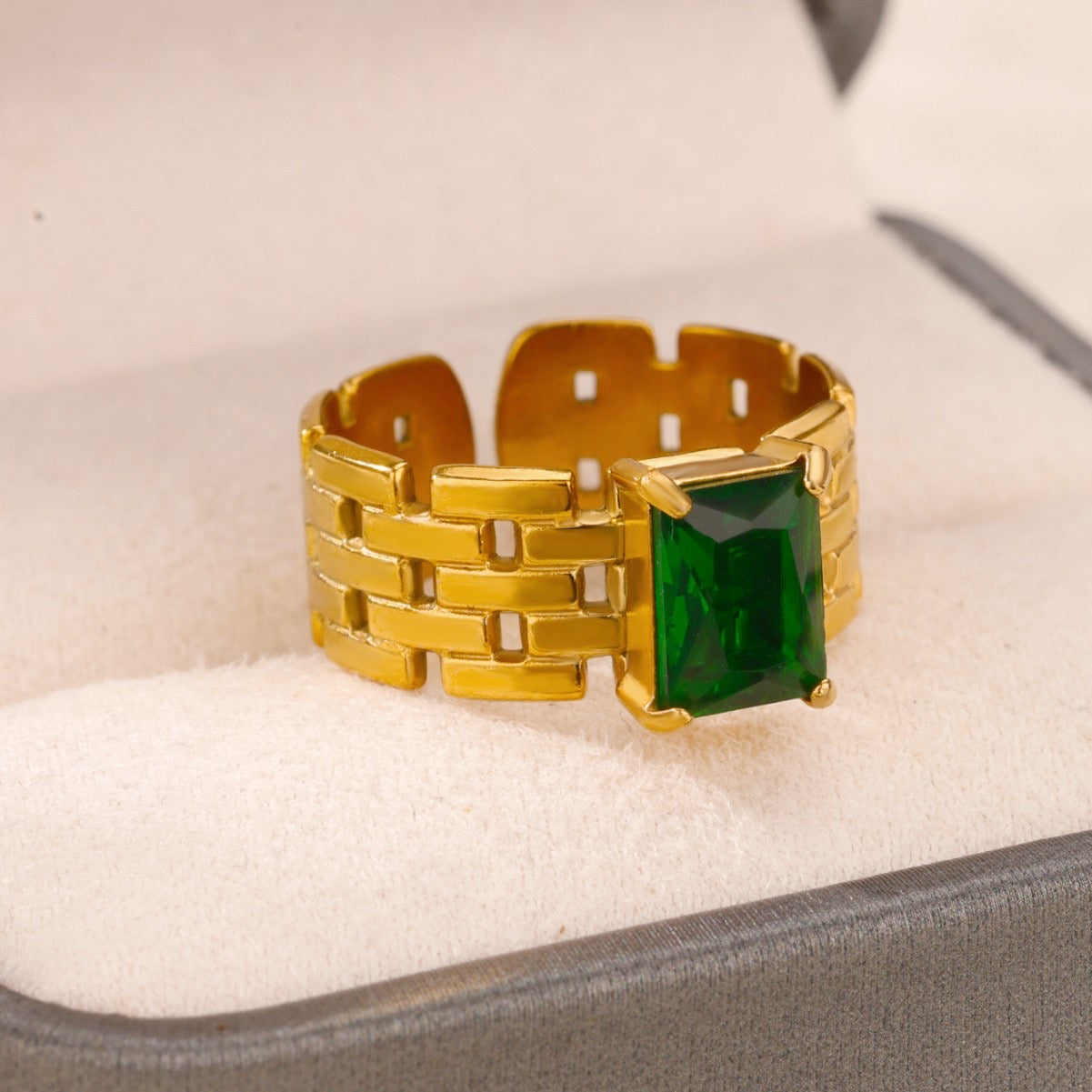 Gold rings, anti tarnish rings, green ring, statement jewellery, stainless steel rings, gold jewellery, Pinterest inspired jewellery