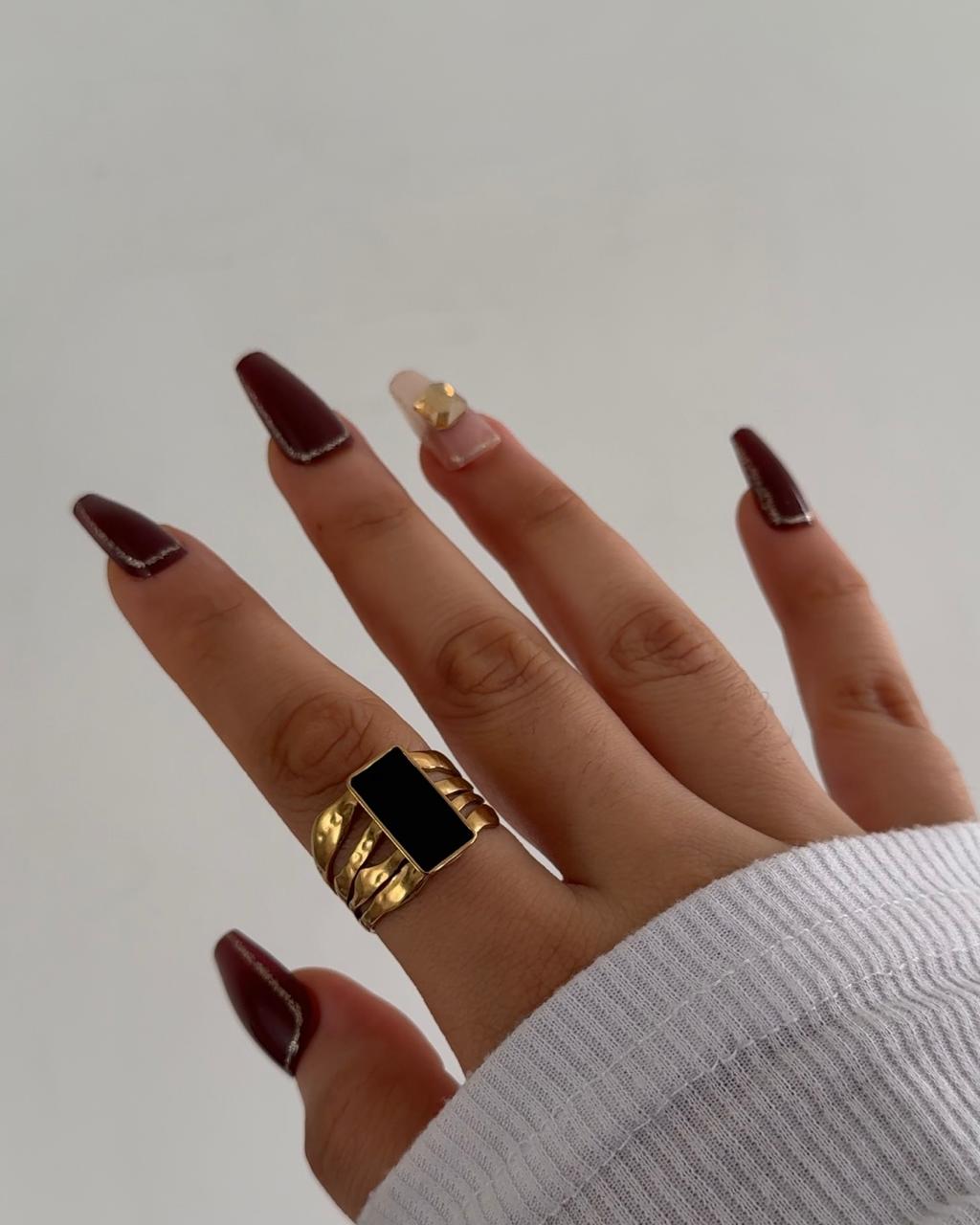 Gold ring, black ring, rectangle ring, beach ring, bold ring, beach jewellery, anti tarnish ring, gifts for girls