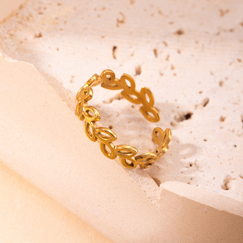 Gold ring, petal ring, leaf ring, anti tarnish ring, stainless steel ring, gifts for girls