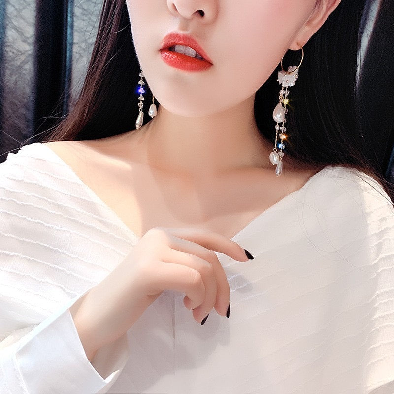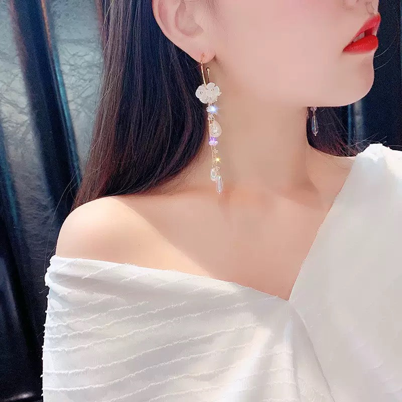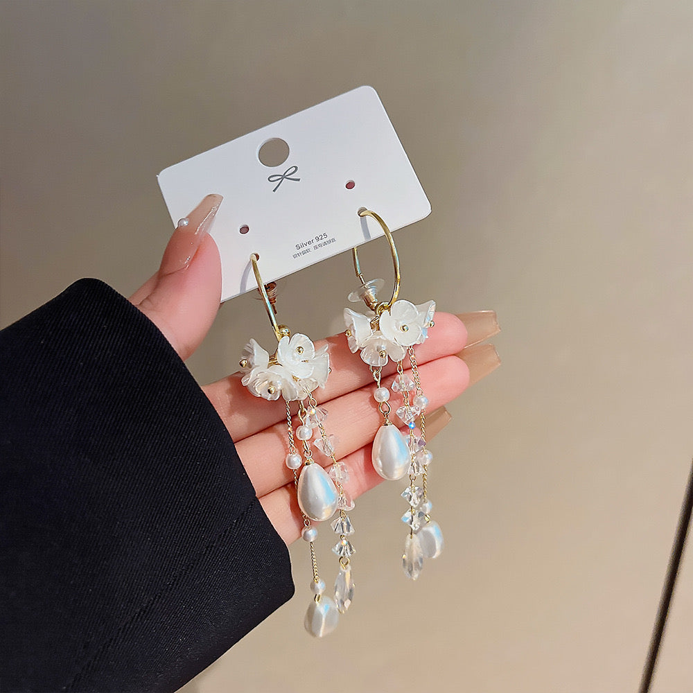 Pearl earrings, gold earrings, dangling earrings, flower earrings, white earrings, pinteresty accessories, gifts for girls
