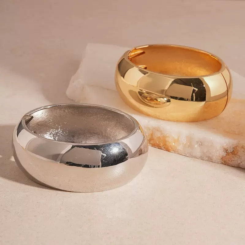 Gold handcuffs, silver handcuffs, y2k jewellery, trendy bangles, chunky hand stack, chunky bangles
