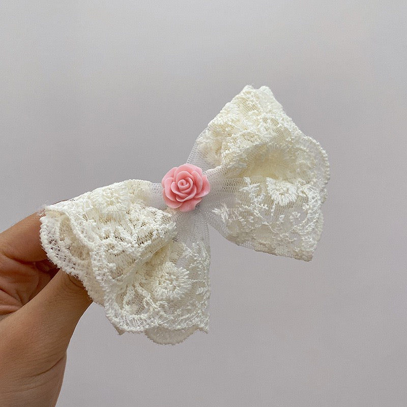 Bow hair clip, white hair clip, pink hair clip, lace hair clip, Pinteresty hair clip, gift for girls, soft girl accessories