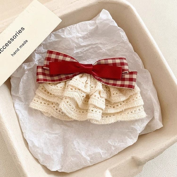 Victorian Lacy Plaid Hair Bow