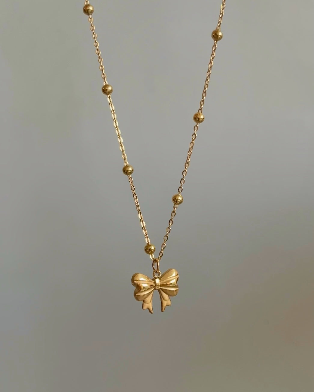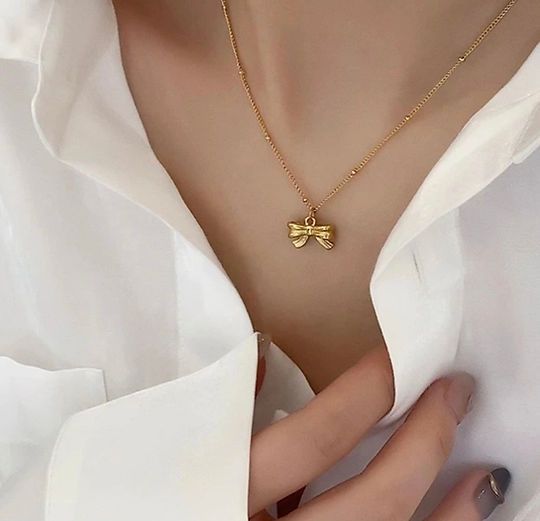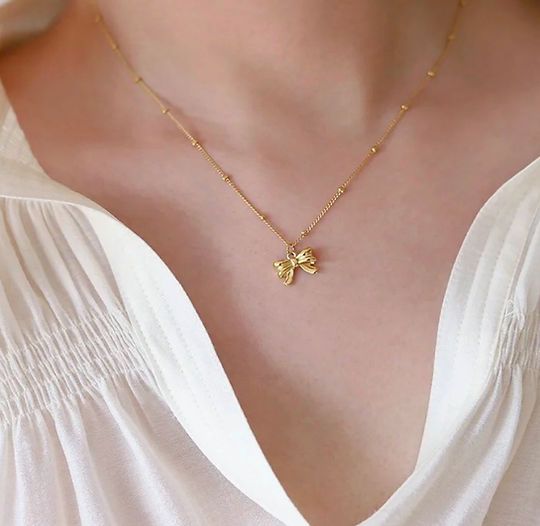 Anti tarnish necklace, minimal necklace, premium quality necklace, gifts for her, gold plated necklace, statement necklace, coquette aesthetic, Pinterest jewellery, bow jewellery, stainless steel jewellery , minimal jewellery.